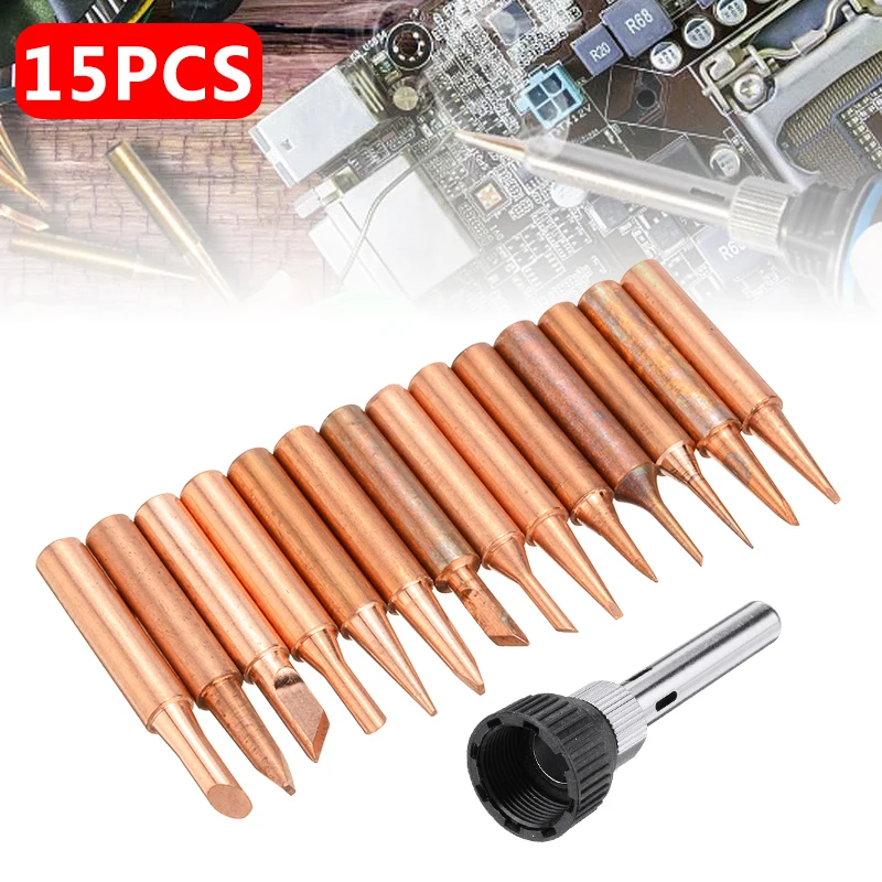 Наконечник паяльника медный 900 м, 15 шт., бессвинцовые наконечники для паяльной станции 936 937 938 969, сварочная головка с втулкой