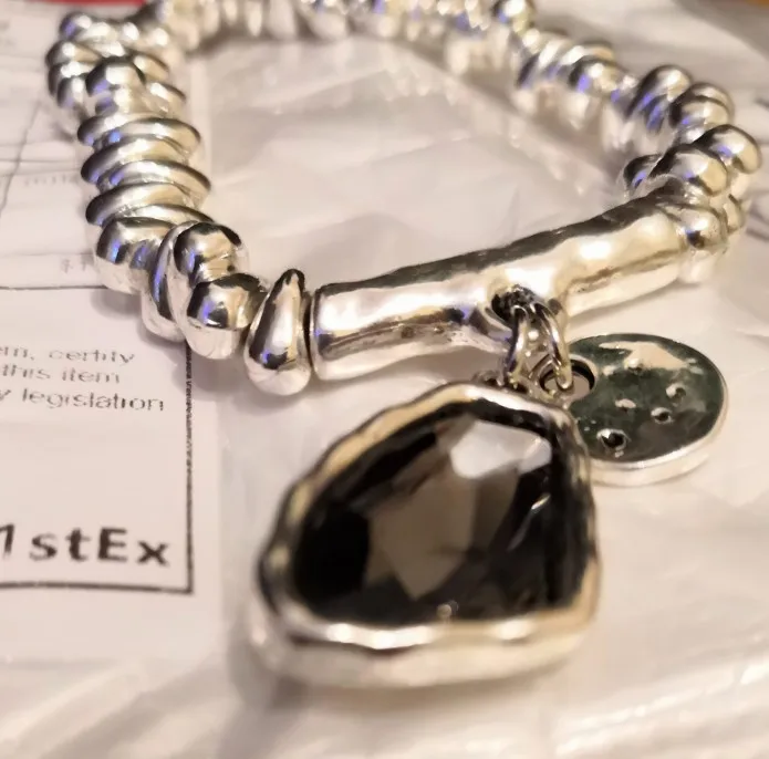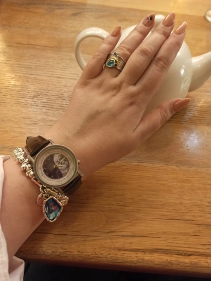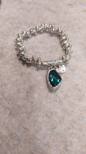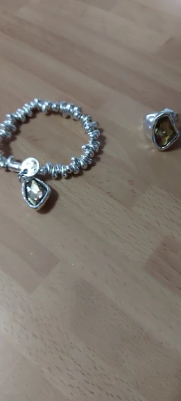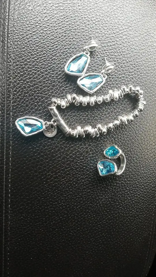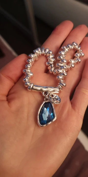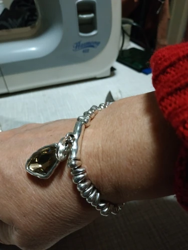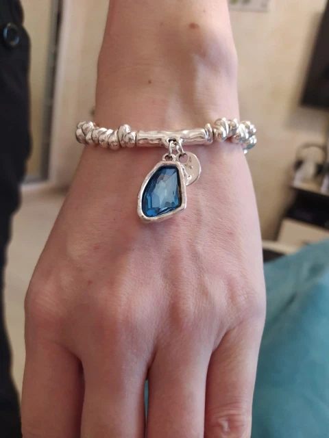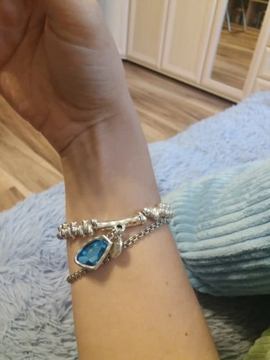 Браслет на резинке на мою ручку 16 размера слегка великоват,что не критично.Подвеска ярко голубого(не синего) цвета. К нему взяла кольцо с таким же "камнем" смотрится очень хорошо . От известного испанского"прототипа" отличается оттенком металла(ближе к светлому серебру). Заказ во Владивосток пришел быстрее обычного (к нам заказы идут через Москву или прибалтику,что конечно очень странно . Так что я очень довольна Как и гарнитуром с кристаллами серо коричневого цвета. Большое спасибо продавцу и мастерам за красоту