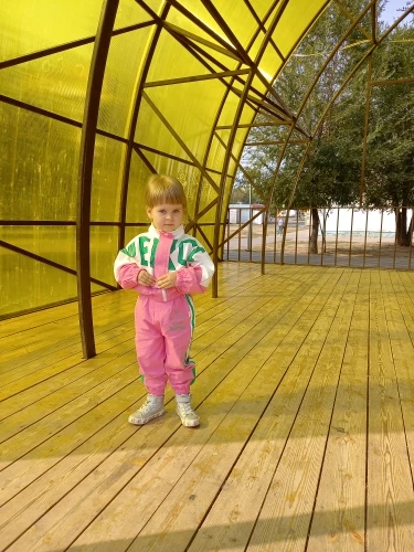 Костюм скорее летний, просто он процентов на 50 синтетический ( по ощущениям) и в жару будет душно, но точно не для осени! Сидит хорошо, мода 90х годов очень мило смотрится на ребёнке. Стирку пережил и не полинял, гладится хорошо