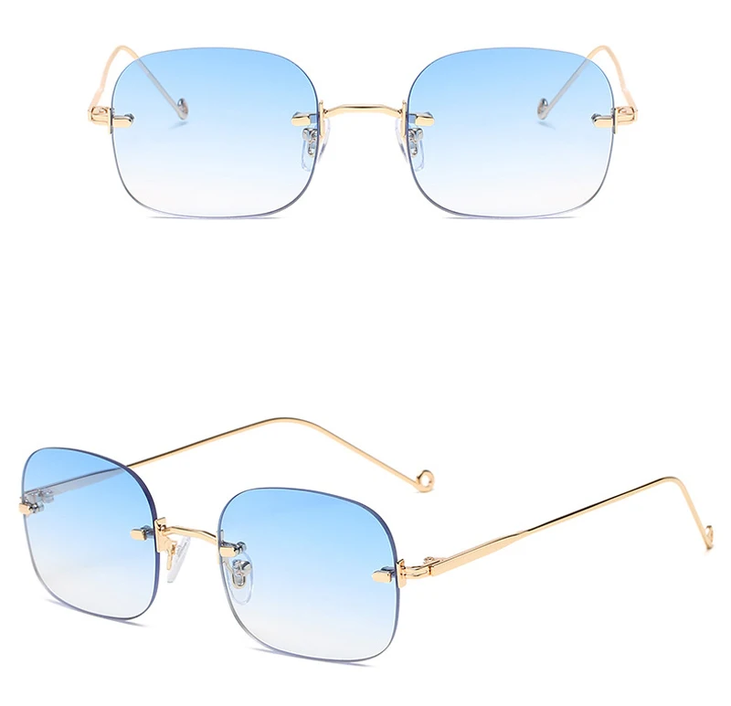 Солнцезащитные очки Kachawoo без оправы для мужчин и женщин, квадратные, коричневые, синие светильник лые, аксессуар