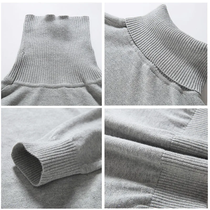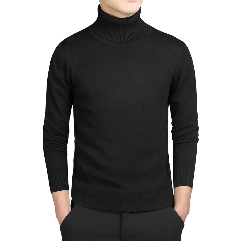 Свитер мужской, хлопковый, зимний, теплый, черный, с высоким воротом, XR204