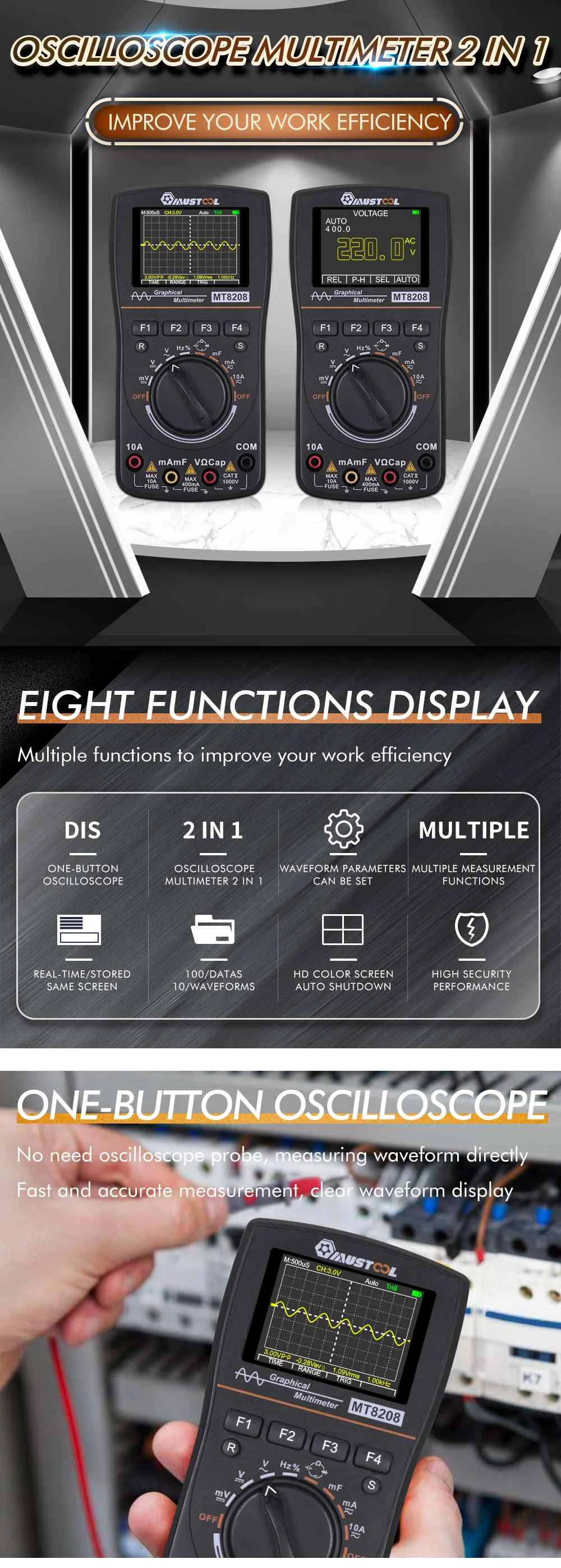 Мультиметр muтабурет MT8028 2 в 1, умный Графический Цифровой осциллограф с цветным экраном 2,4 дюйма для электронных испытаний