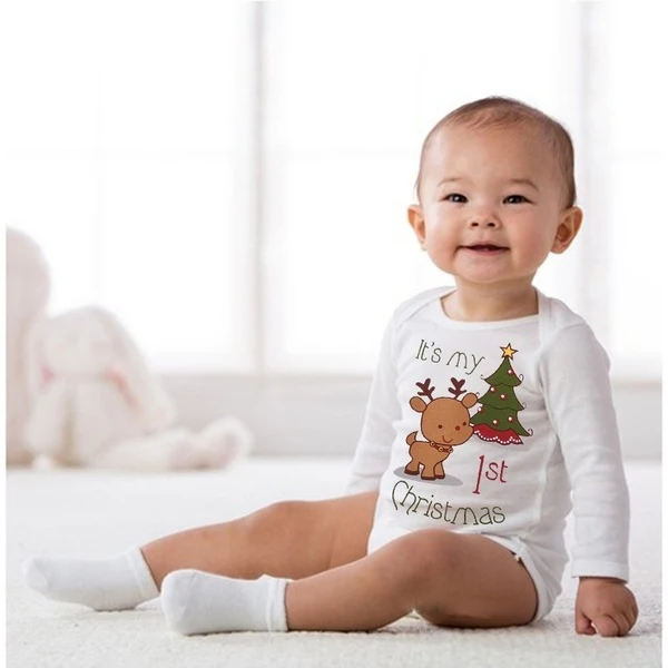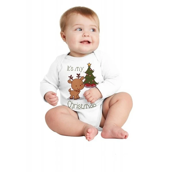My First комбинезон для малышей Рождественский Осенние Теплые Детские Боди с длинным рукавом для мальчиков и девочек, Футболки унисекс, повседневная одежда