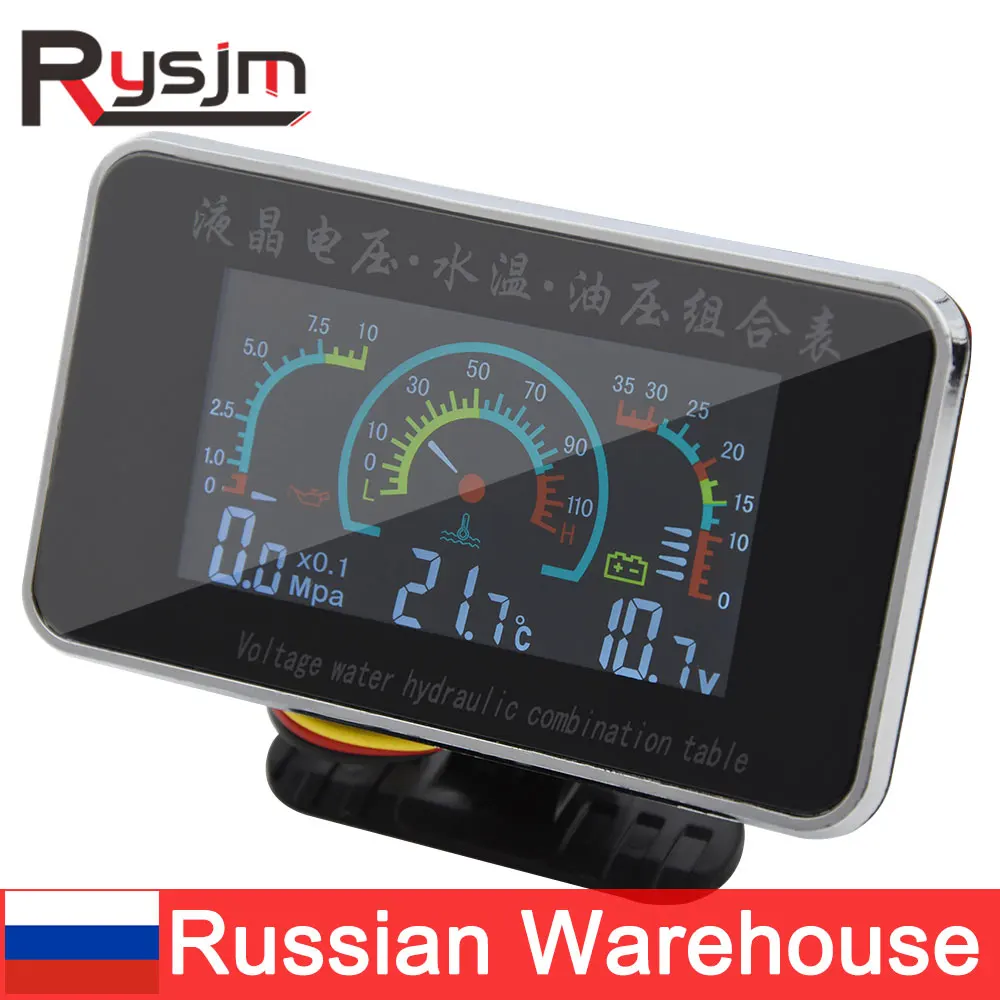 Русский склад 3 в 1 ЖК Автомобильный цифровой датчик температуры воды вольтметр давление масла Температура воды метр 1/8 NPT 10 мм Датчик температуры масла