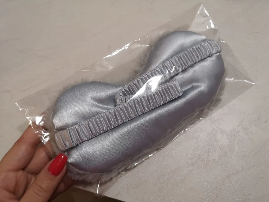 Пришла в двух пакетиках, в срок. Вид как на картинке. Очень мягкая на ощупь, ворс очень приятный, не кажется слишком искусственным, если так можно сказать. Сама маска чистая, резинка хорошая. Многие пишут, что велика, но на мою большую голову в самый раз, ночью, конечно, слетает, но смотря как наденешь. Один раз я не смыла макияж, тем самым испачкав её тушью, но все легко смылось, когда я протерла ватными дисками с мицеллярной водой, но тут думаю, больше от туши зависит. Маска плотная, свет не пропускает, спать в ней очень комфортно, ничего не жмёт. Буду рекомендовать друзьям, а может когда-то и сама закажу ещё.