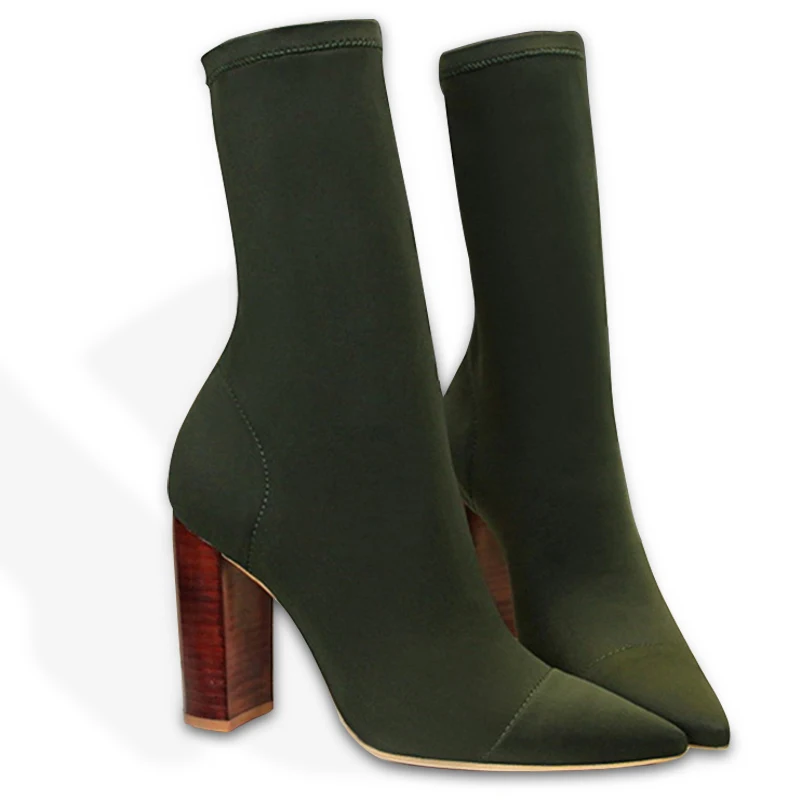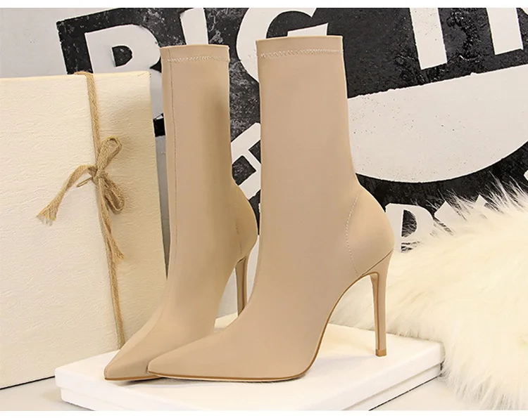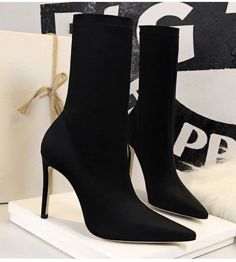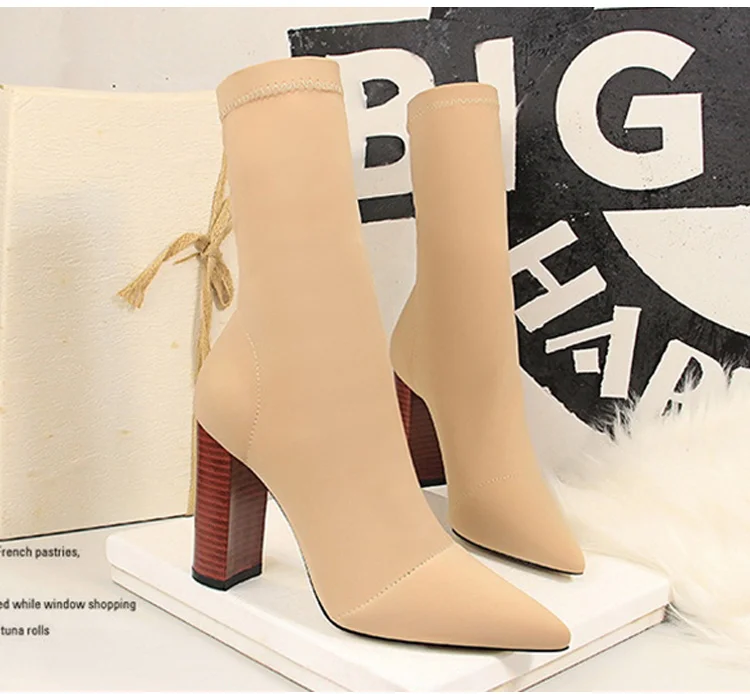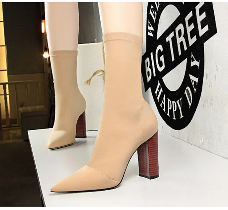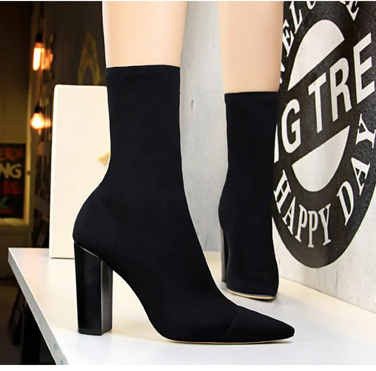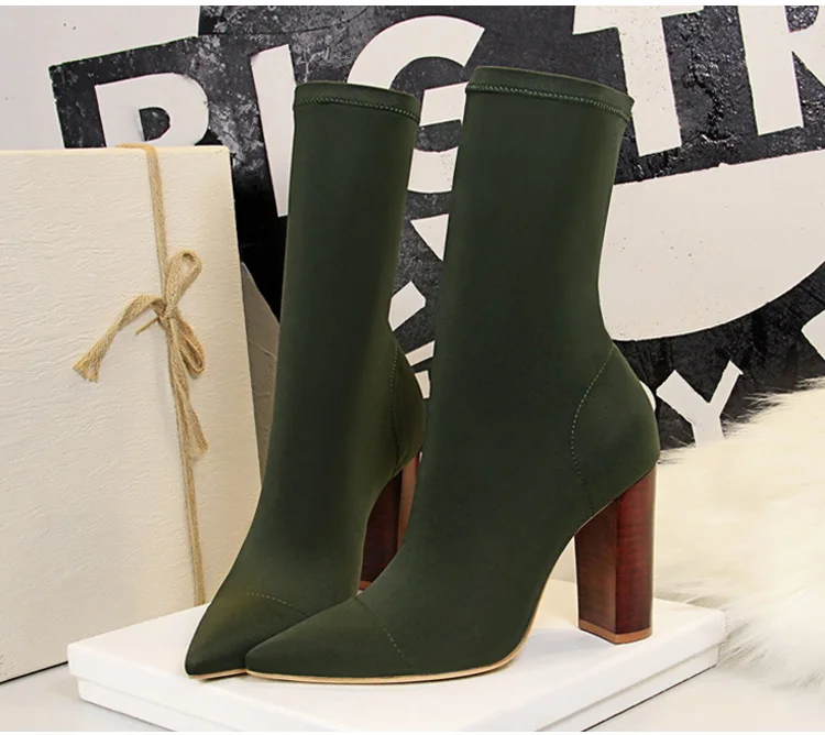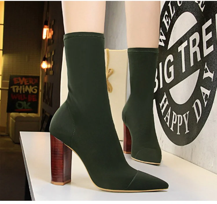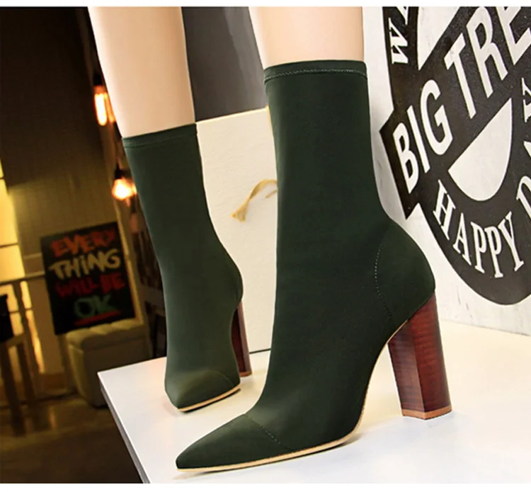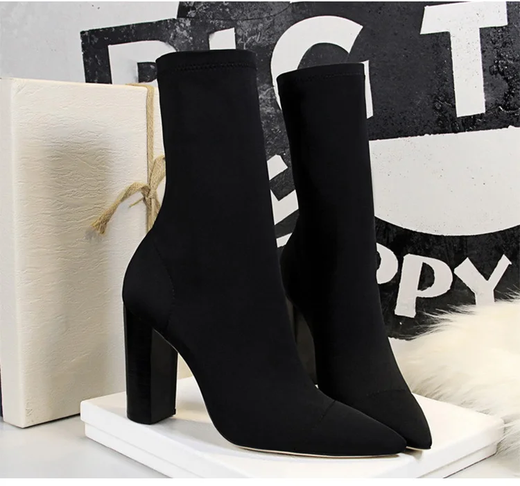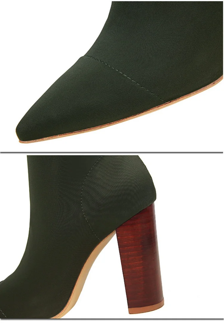 Новинка 2021, сапоги-носки для женщин, сапоги на высоком каблуке, сапоги до середины икры из эластичной ткани, зимняя обувь, сексуальные женские сапоги на квадратном каблуке
