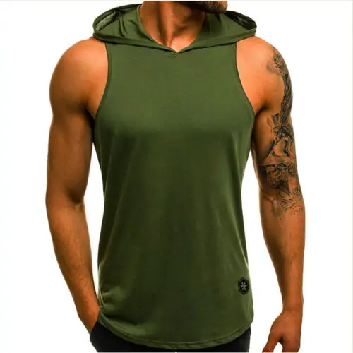 Толстовка мужская Спортивная однотонная, Повседневная Свободная хлопковая майка без рукавов для мускулов, с надписью, для бодибилдинга, футболка с капюшоном