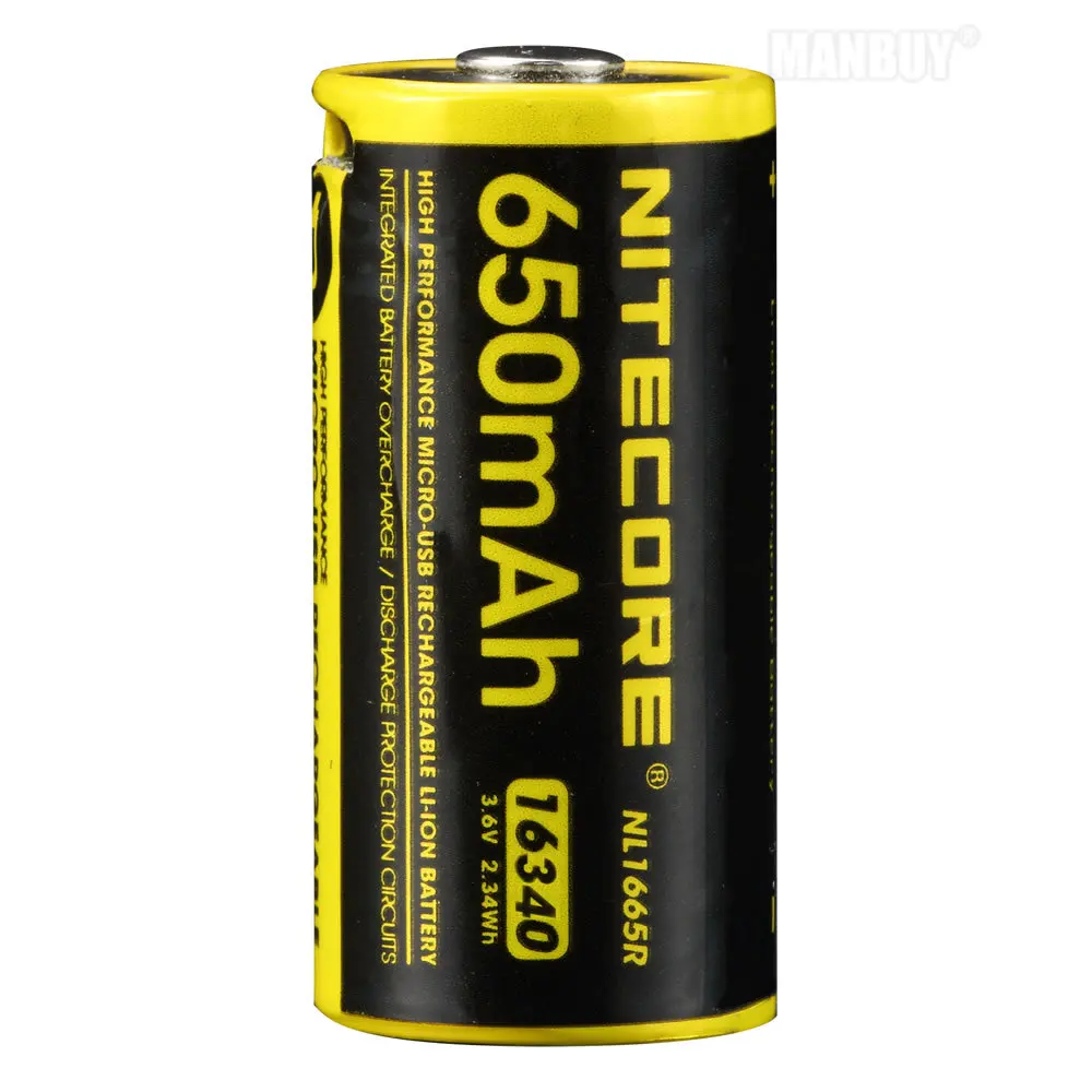 NITECORE NL1665R 650mAh 16340 CR123 высокопроизводительный литий-ионный аккумулятор Micro-USB (Не включает usb-кабель для зарядки)