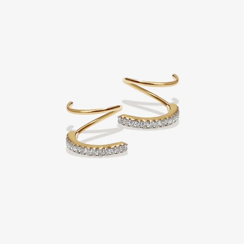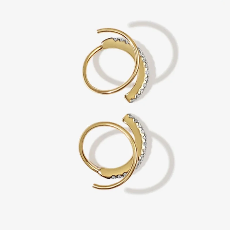Серьги-кольца женские из серебра 925 пробы с фианитами, 1 шт.