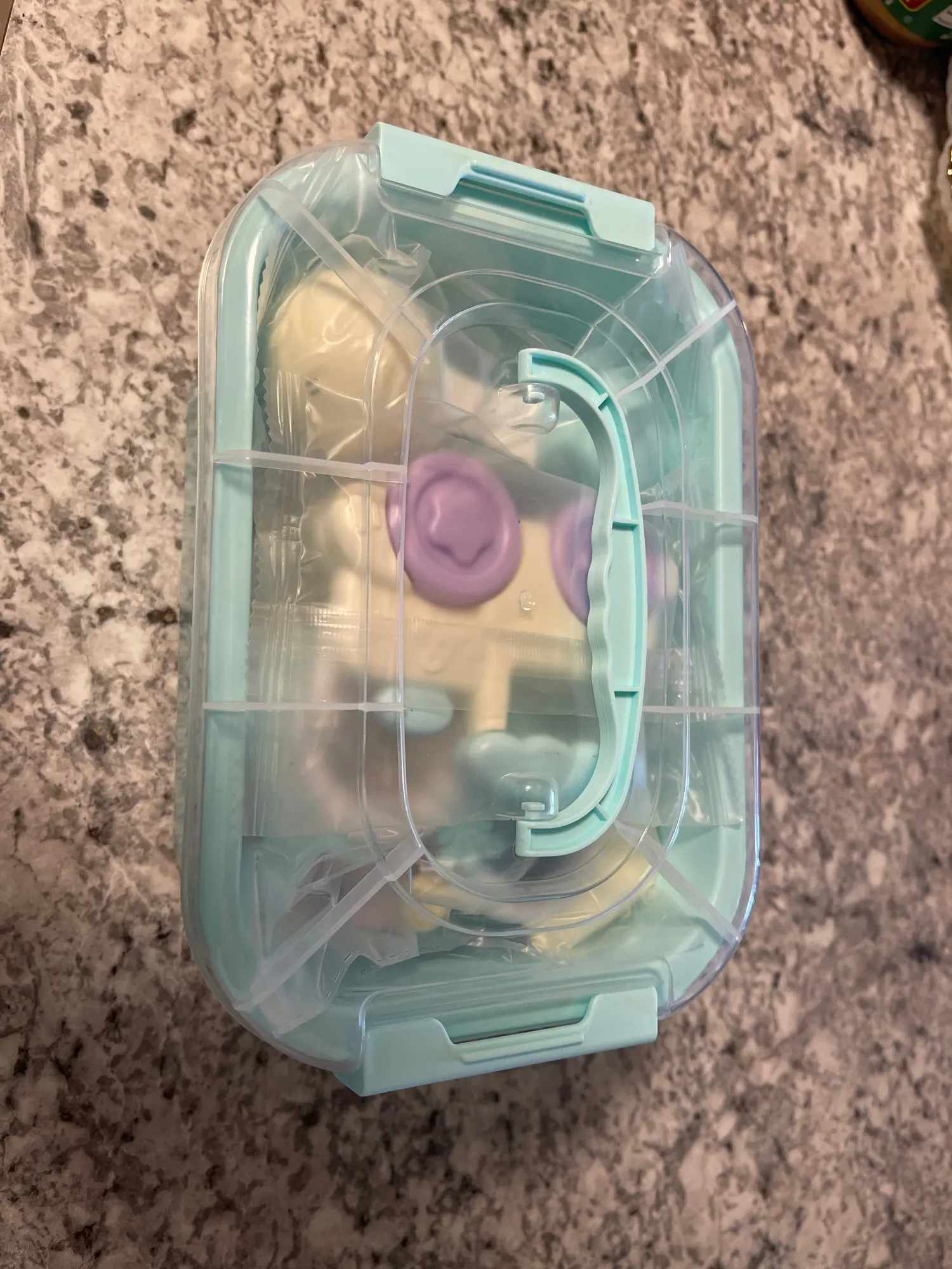 Плохо было упаковано,весь контейнер развалился,а я как раз из-за него и брала. Игрушки все целы.