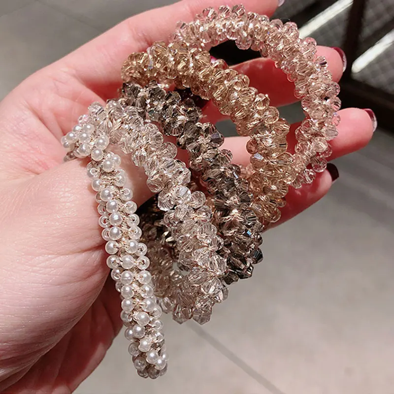 Аксессуары для волос, кольцо для волос, эластичная резинка для волос, 1 шт., резинки, браслет, Кристальный жемчуг, повязка для волос