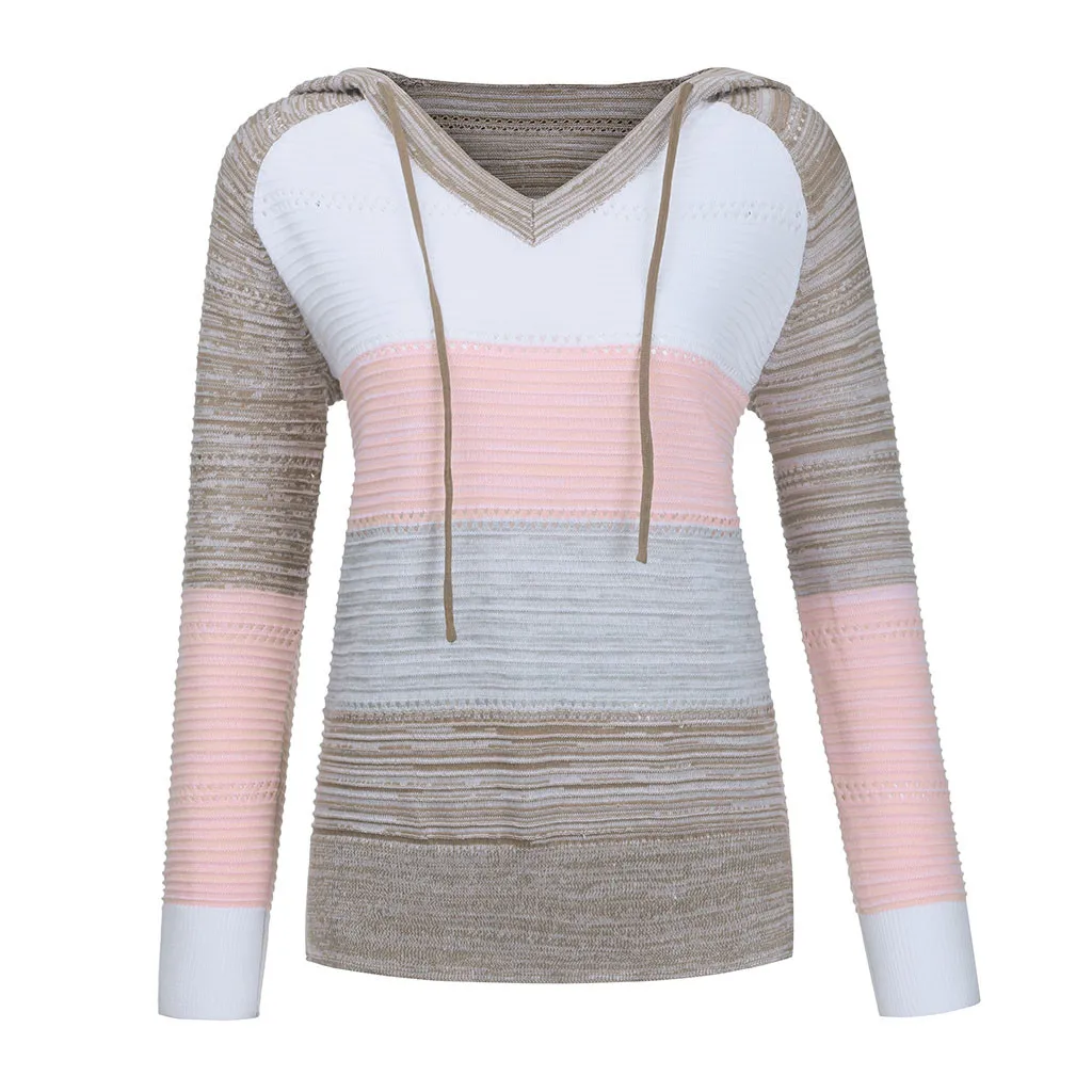 Модные женские повседневные Лоскутные Топы с v-образным вырезом и длинными рукавами с капюшоном