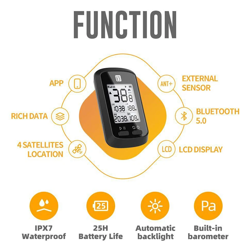 Особенности: 1.Многофункциональный-Этот велосипедный компьютер имеет все основные функции, такие как текущая скорость, средняя скорость, максимальная скорость, время в пути и т. д. 2.Беспроводной из водонепроницаемого материала-Водонепроницаемость позволяет ездить на велосипеде в любую погоду. Беспроводная конструкция также позволяет избежать сложного подключения и упрощает установку. 3.ЖК-дисплей подсветка-Он может обеспечить безопасную езду в темных местах ночью. 4.Простая установка-Никаких сложных шагов и настроек установки. Внимательно прочитайте инструкции, и вы легко сможете использовать велосипедный компьютер. 5.Широкий спектр применения-Может быть установлен на большинстве типов велосипедов. Подходит для дорожного велосипеда, горного велосипеда и т. д. Технические характеристики: Размер экрана: 1,8 дюйма Тип батареи: перезаряжаемая батарея Срок службы батареи: 25 часов Уровень защиты: IPX7 Тип экрана: ЖК-дисплей GPS: GPS/BeiDou/Glonass/Galileo Метод управления: кнопки Беспроводная передача данных: Bluetooth BLE5.0 Обратите внимание: Вследствие различных особенностей цветопередачи на разных мониторов и светильник эффект, фактический цвет может немного s светильник отличается от представленного на фотографиях.