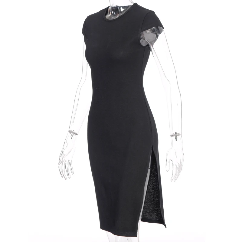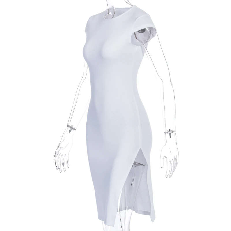 Женское мини-платье с высоким разрезом, черноебелое однотонное облегающее платье-трапеция, летнее Клубное вечернее платье, 2020