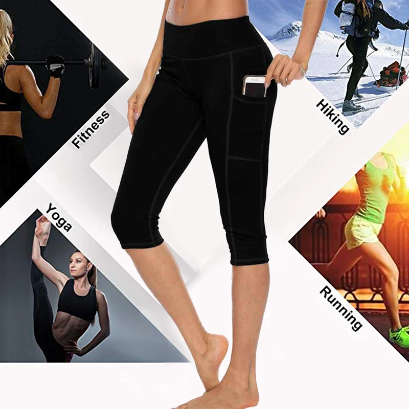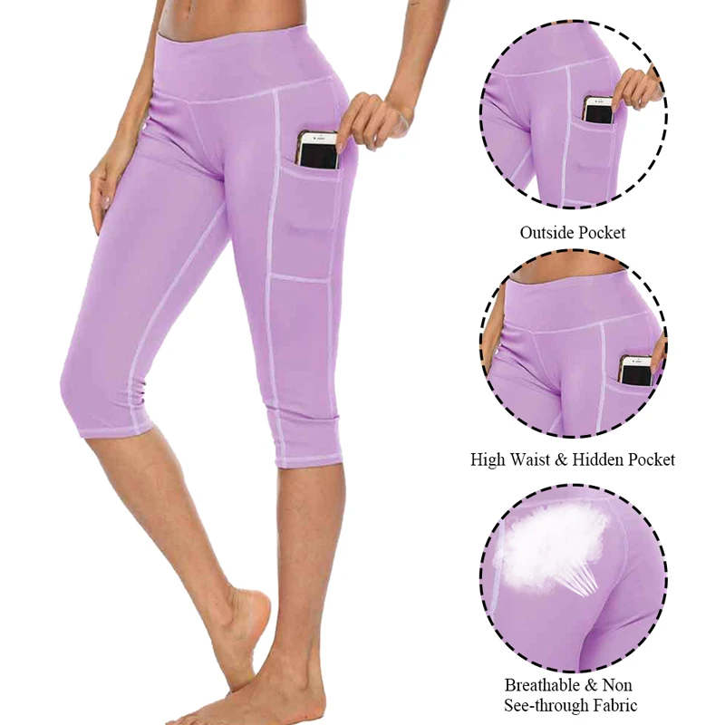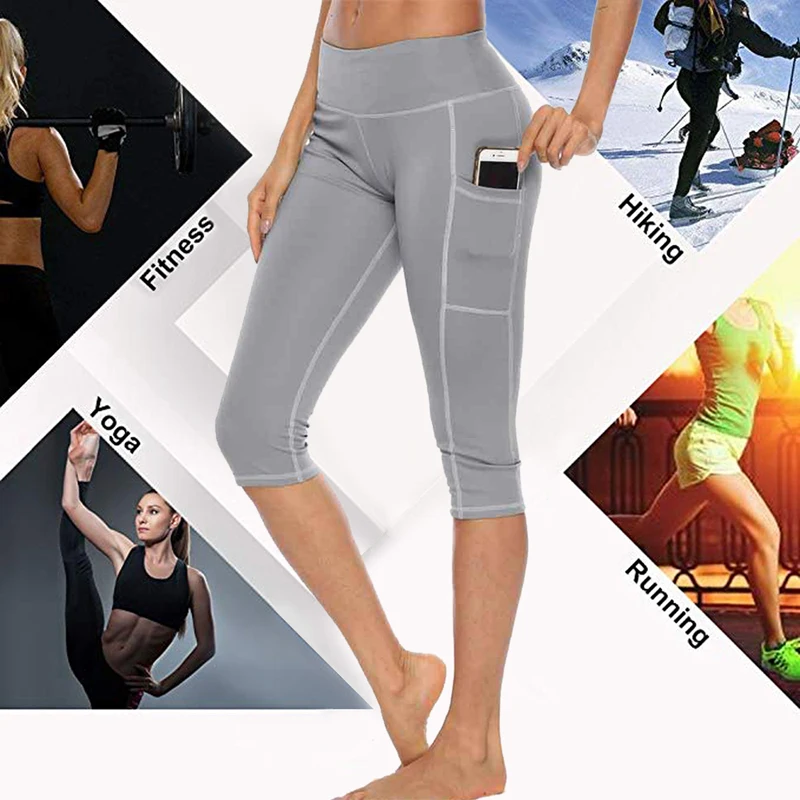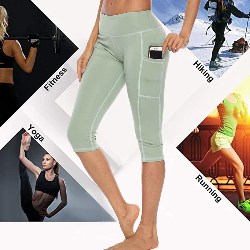 Леггинсы женские для фитнеса и тренировок, пикантные штаны для бега с завышенной талией и боковым карманом, спортивная одежда, короткие брюки до середины икры