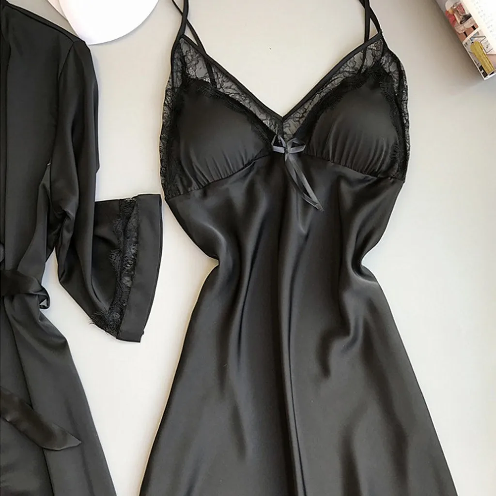 Сексуальная Беспроводная Пижама без оправы, кружевная ночная рубашка, шелковое нижнее белье, женская одежда для сна
