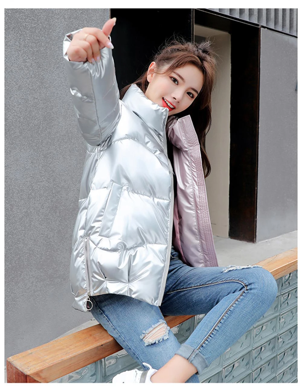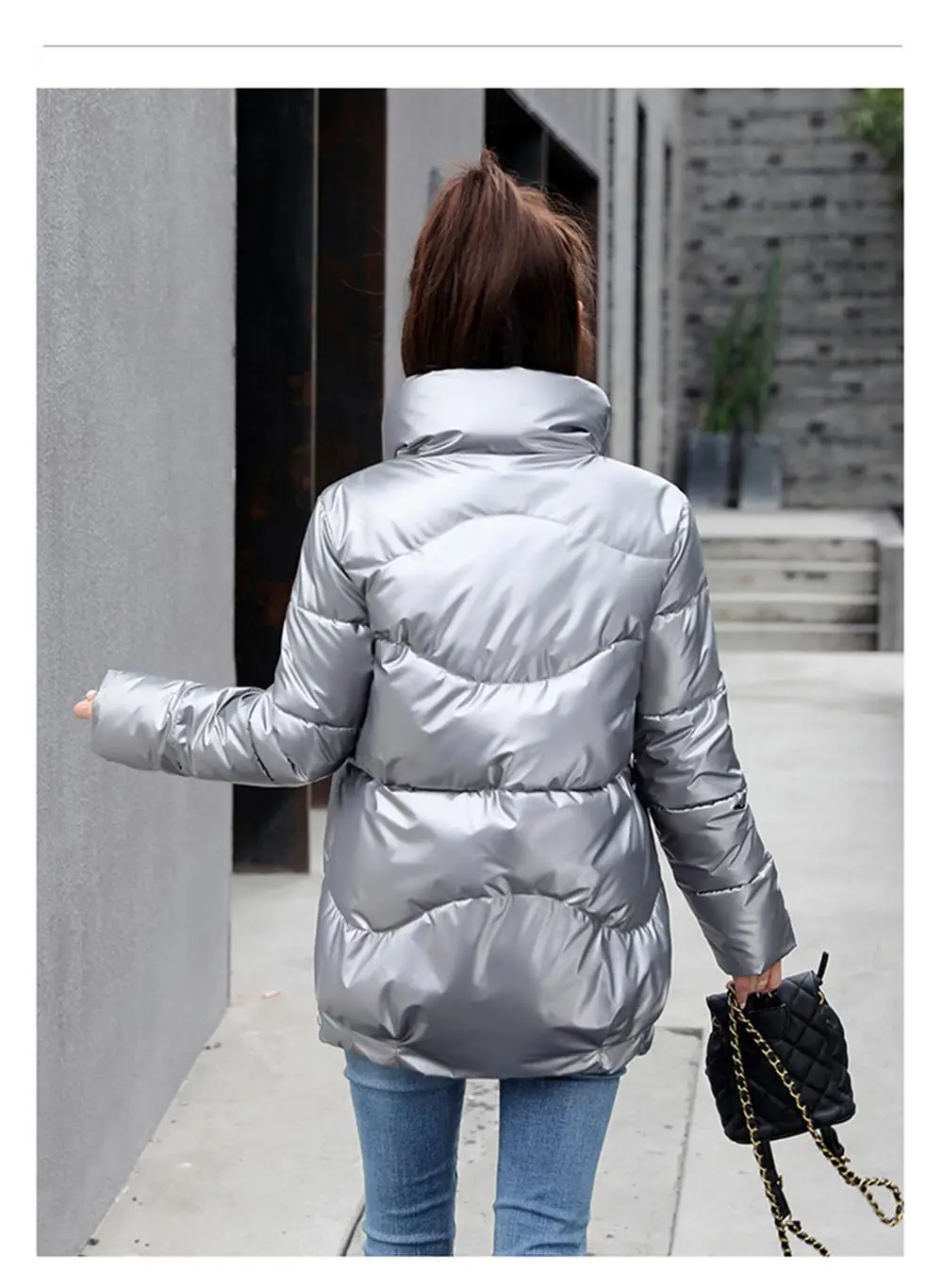 Свободные женские короткие парки, однотонная женская зимняя куртка с воротником-стойкой, хлопковая подкладка, плотный Повседневный пуховик, женское холодное пальто, верхняя одежда, Новинка