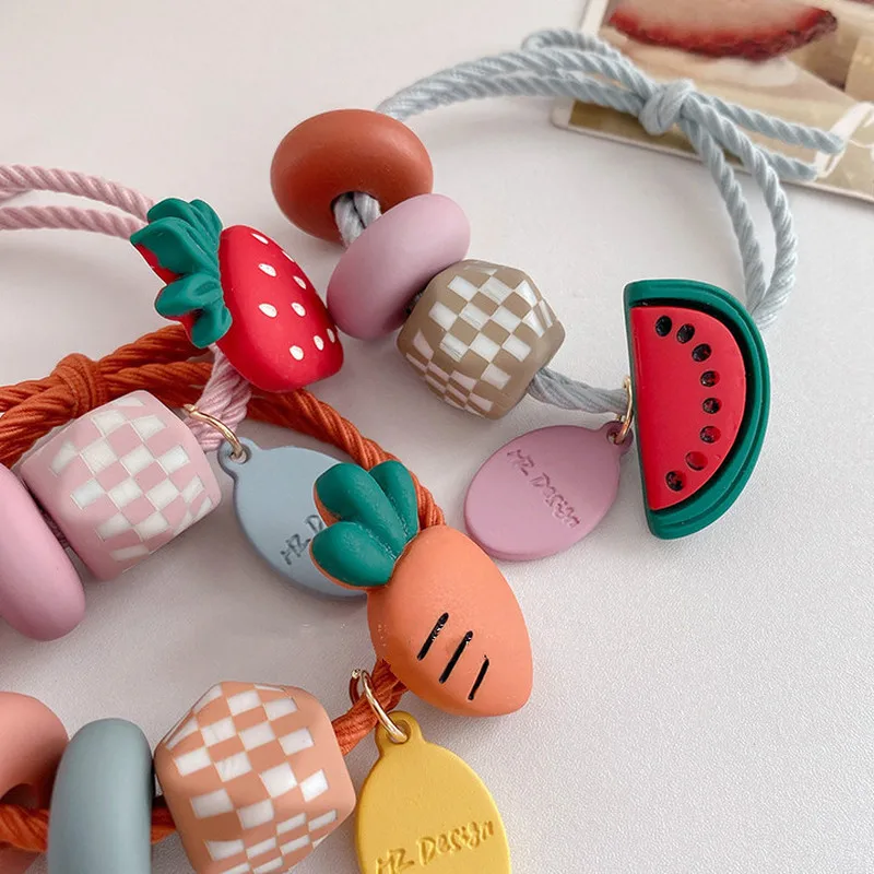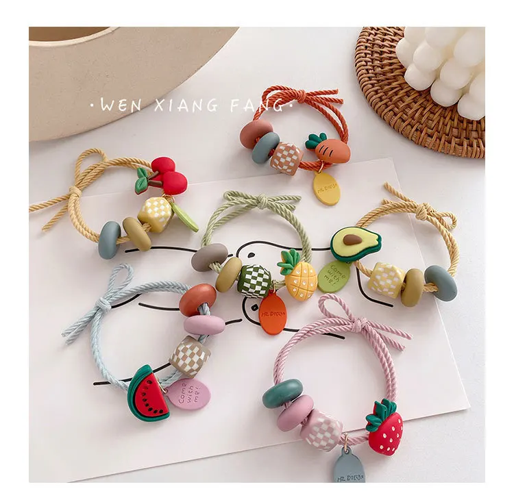 Резинка для волос в Корейском стиле для девочек, простой милый геометрический ободок с фруктами и овощами, модные аксессуары для волос, 2020