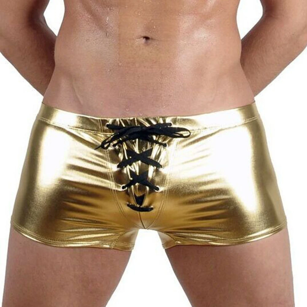 Мужские эротические из искусственной кожи боксеры на бретельках, нижнее белье, мокрые шорты из ПВХ, латексные Клубные лакированные мужские боксеры