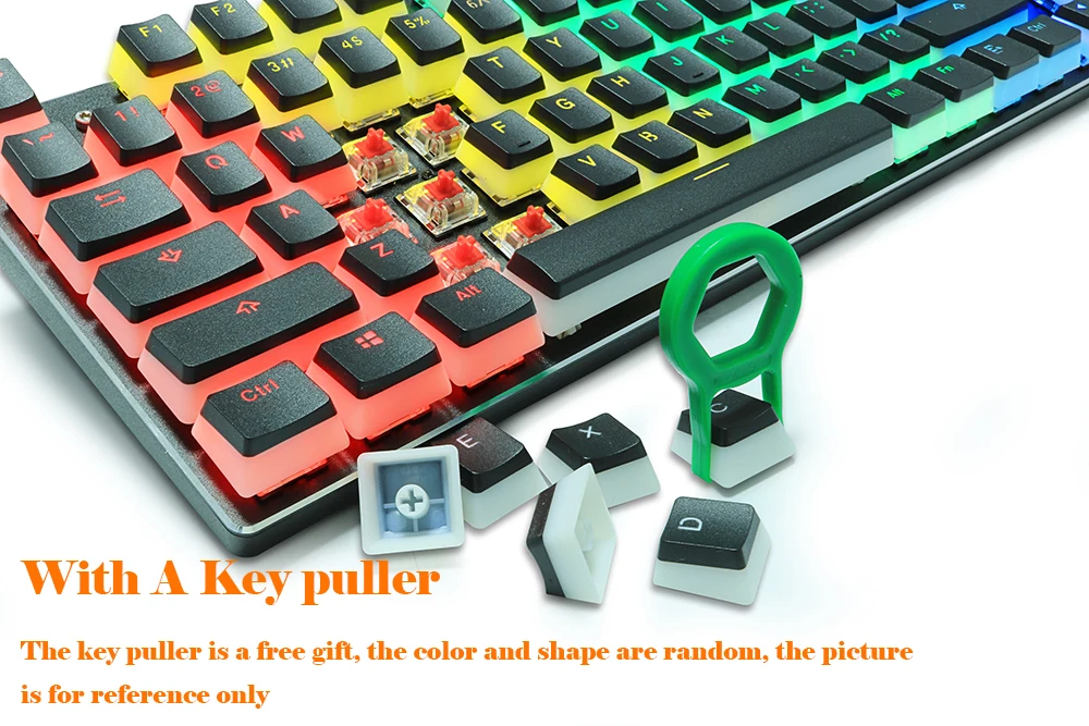 Вопросы продукта 【Pudding Gaming Keycaps:】 двухслойный цветной дизайн keycap, с RGB клавиатурой, чтобы показать более ослепительный эффект лампы RGB. 【Твердый и прочный 】 колпачки сделаны из двойного материала PBT, не легко носить и отлично на ощупь. 【Простая установка 】 колпачок с ключом, точный дизайн, позволяет легко вытащить и заменить его. 【Широко совместимая клавиатура содержит 104 клавиши, совместимая стандартная механическая клавиатура US (87 клавиш, 104 клавиши и 108 клавиш) (Теплые советы: Этот продукт не включает клавиатуру, нестандартная раскладка в США, некоторые клавиши не совместимы и клавиатура не совместима с HV-KB390L и HV-KB395L). 【Идеально подходит для PC Gaming】 полупрозрачный колпачок улучшает эффект RGB клавиатуры, чтобы создать атмосферу игры, и превосходное нажатие позволяет вам погрузиться в игру. Внимание: Некоторые большие колпачки для ключей, такие как Tab, caps lock, Shift, Back, Space и Enter, могут иметь некоторые допуски.