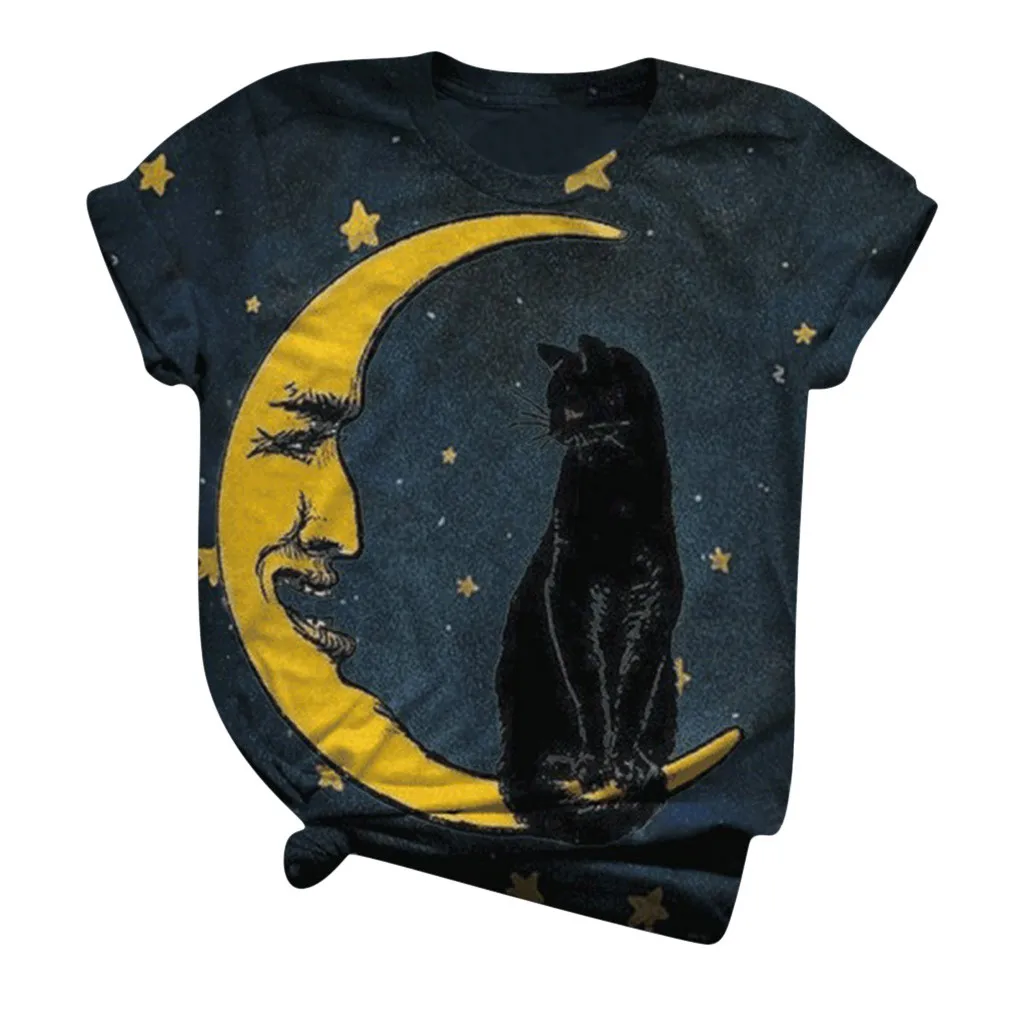 Женская Футболка 4 # с принтом кота в стиле бохо, топы с коротким р...