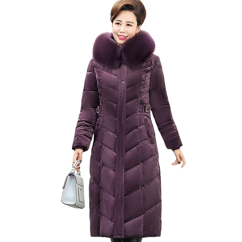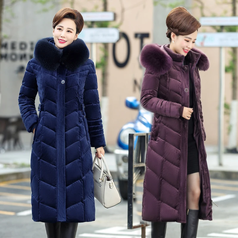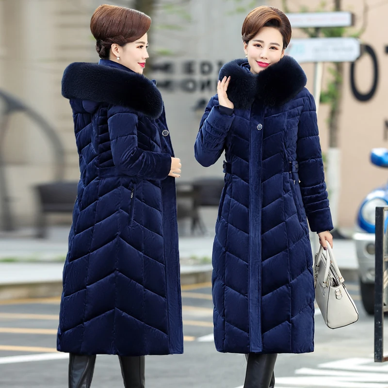 2021 Утепленная зимняя куртка, Женская длинная парка, Женское зимнее пальто среднего возраста, теплая Женская куртка с капюшоном и меховым воротником