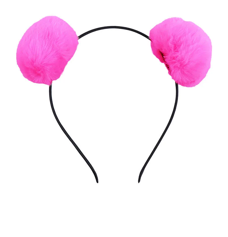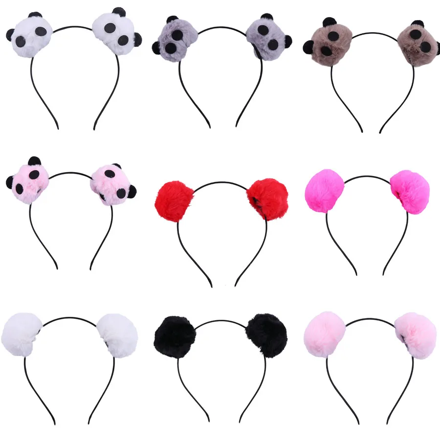 Плюшевая повязка на голову с помпонами для женщин и девочек, милая повязка на голову с ушами, украшение для волос в виде панды, костюм для косплея, Рождество, Пасха, День Св. Валентина