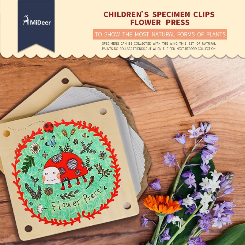 MD0071 MiDeer детский цветочный и листовой пресс, натуральное ремесло, счастливое время, деревянное искусство, искусство на открытом воздухе, обучающая игрушка для детей, подарок