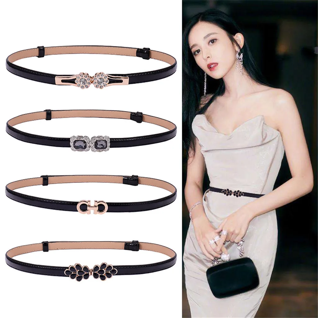 Ремень женский эластичный, тонкий кожаный пояс с пряжкой, A714, лето 2020