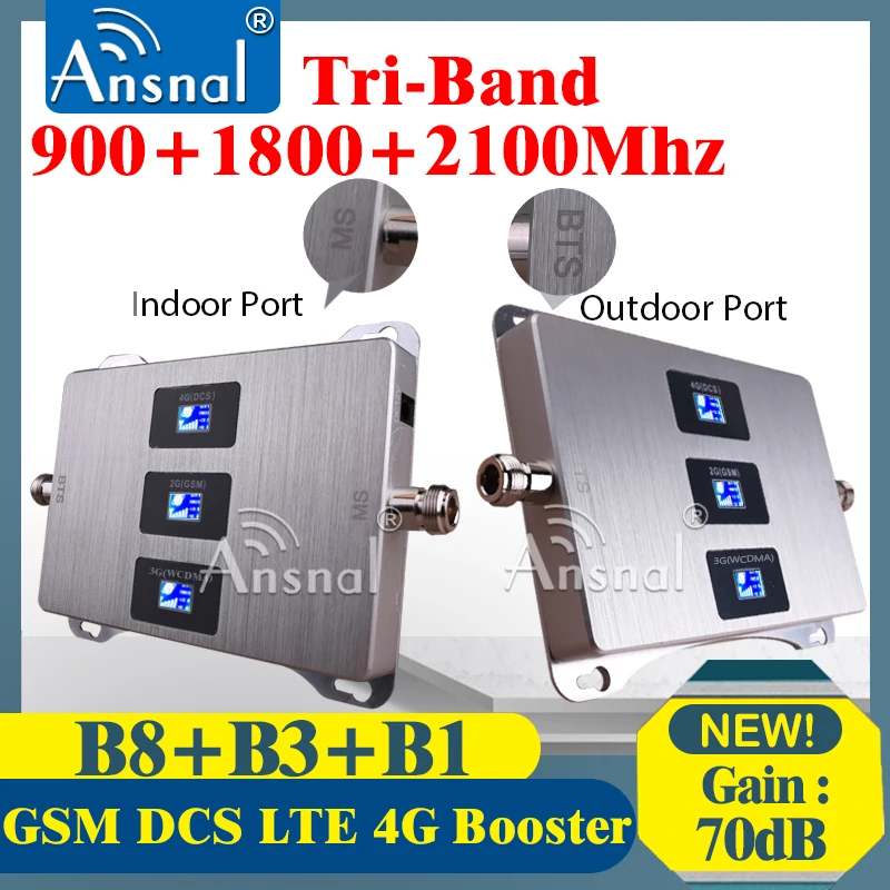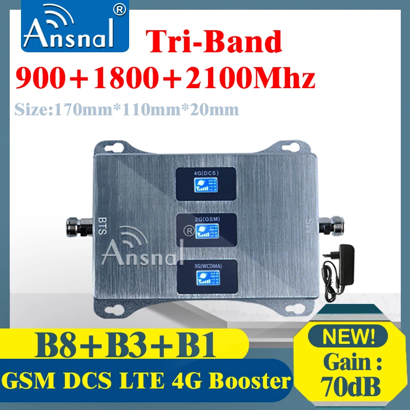 Трехдиапазонный усилитель сотовой связи 4G, 900, 1800, 2100 МГц, 70 дБ, ретранслятор gsm, 2g, 3g, 4g, Мобильный усилитель сигнала, ретранслятор GSM DCS LTE 4G, 1 шт.
