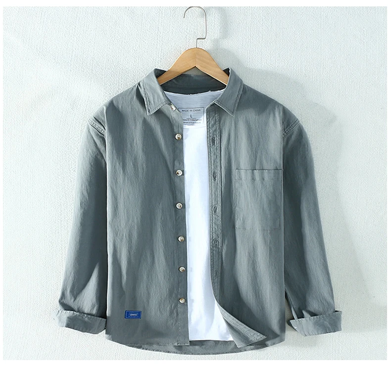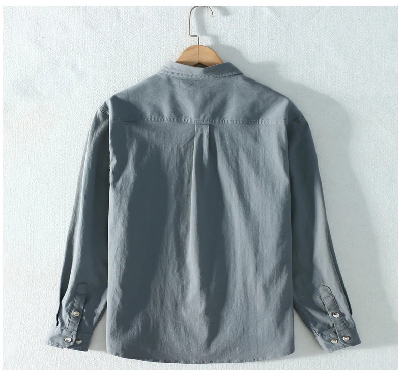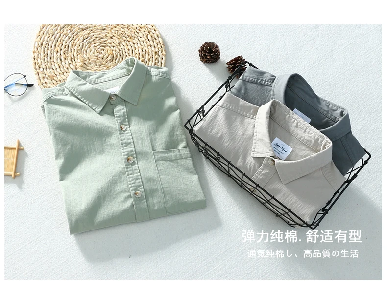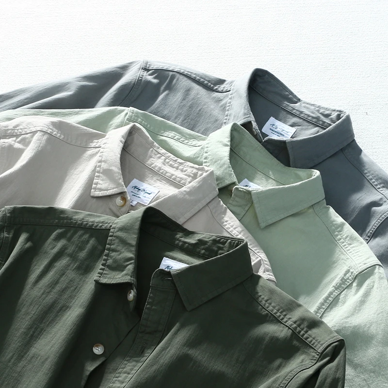 Schinteon Новая мужская рубашка с длинными рукавами и отложным воротником, хлопковая Повседневная плотная Осенняя мужская Однотонная рубашка в японском стиле