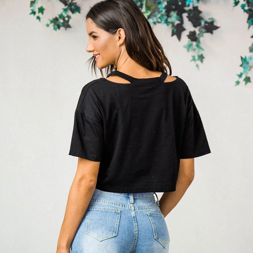 Короткий топ Slevee женский в стиле Харадзюку, модная короткая футболка с V-образным вырезом и забавным принтом планет, Студенческая футболка для подростков, на лето