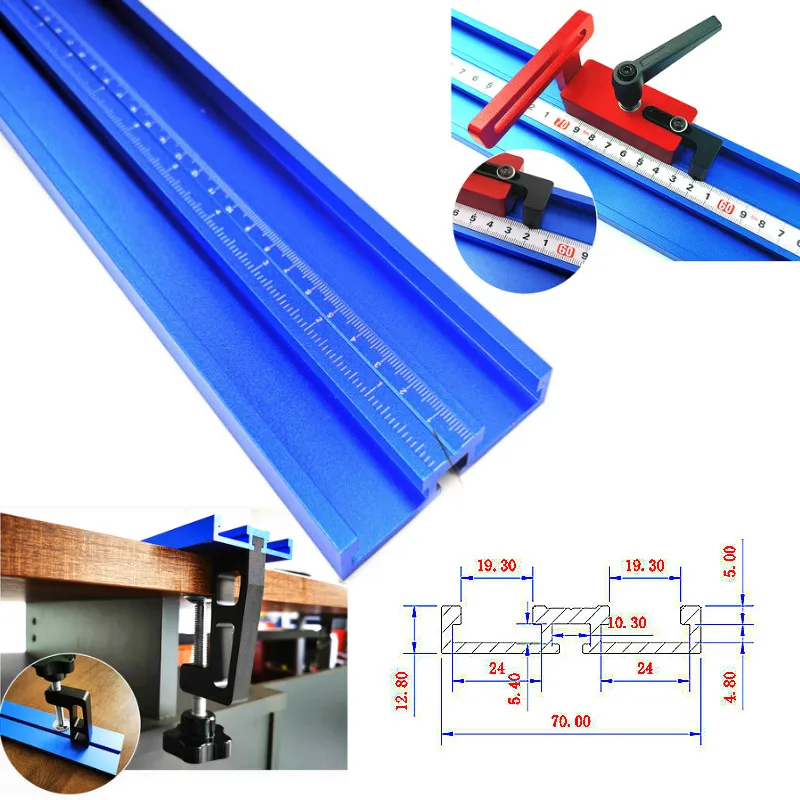 Деревообрабатывающий желоб, Т-образный трек из алюминиевого сплава, 800 мм, Т-образный слот со шкалой и стандартными торцевыми направляющими для рабочего стола, фрезерного стола