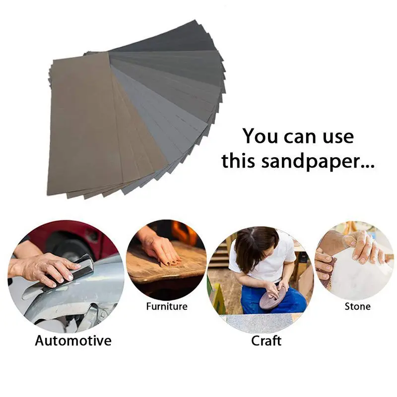 Ассортимент наждачной бумаги Wet Dry-мы предлагаем листы наждачной бумаги Ассорти 20шт, по 4 листа каждой крупы: 1000/2000/3000/5000/7000.Прочный и высококачественный шлифовальный лист-наждачная бумага высокой зернистости составляет от 1000 до 7000 (супертонкая). Отлично подходит для деревообработки, полировки металла, шлифовки автомобилей и других проектов по благоустройству дома.Наждачная бумага в ассортименте от 1000 до 7000-эта наждачная бумага высотой 9x3,6 дюйма отлично подходит для металла, дерева, стекла, керамики, камня и других поверхностей. Его можно легко разрезать и сложить под любой ручной инструмент или щель рабочей детали.Отлично подходит для влажного и Сухого использования-эта Полировочная наждачная бумага из водонепроницаемого карбида кремния, с электропокрытием, хорошо работает сухая и влажная шлифовка, и нам нужно сделать 100% качество-проверяйте, когда мы отправляем, чтобы бумага не легко упала при использовании.Удобно и легко идентифицировать-Хорошее разнообразие крупы от грубой до гладкой. Наждачная бумага находится на обратной стороне наждачной бумаги для удобства идентификации.Цвет: черныйМатериал: глиноземПосылка20 * влажная наждачная бумагаТолько вышеуказанное содержимое упаковки, другие товары не включены.Примечание светильник вая съемка и различные дисплеи могут привести к тому, что цвет товара на изображении немного отличается от реального. Допустимая погрешность измерения составляет +/- 1-3 см.