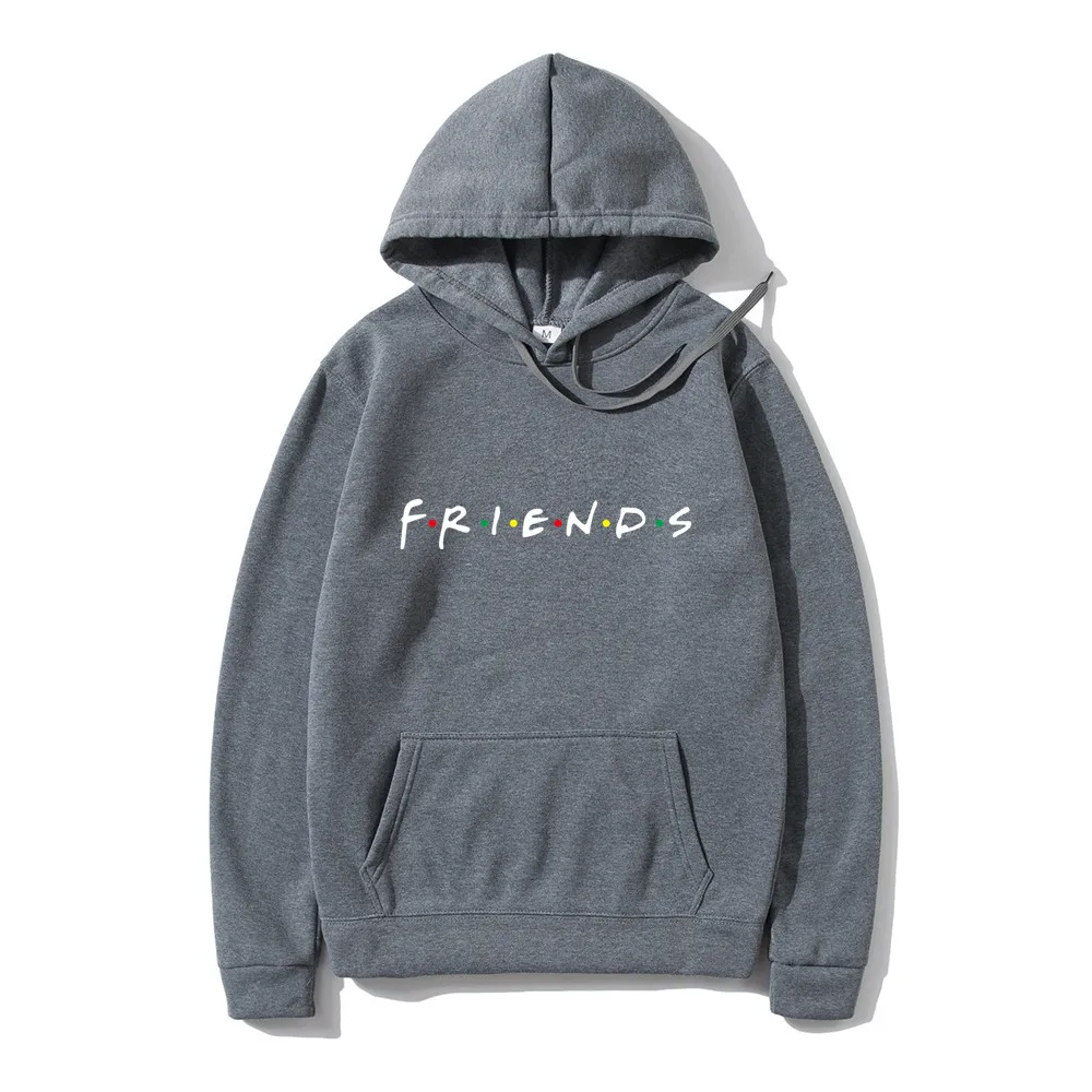 Женские модные толстовки с надписью Friends в стиле Харадзюку, флисовые теплые пуловеры с карманами, свободные однотонные женские толстовки с капюшоном в стиле хип-хоп