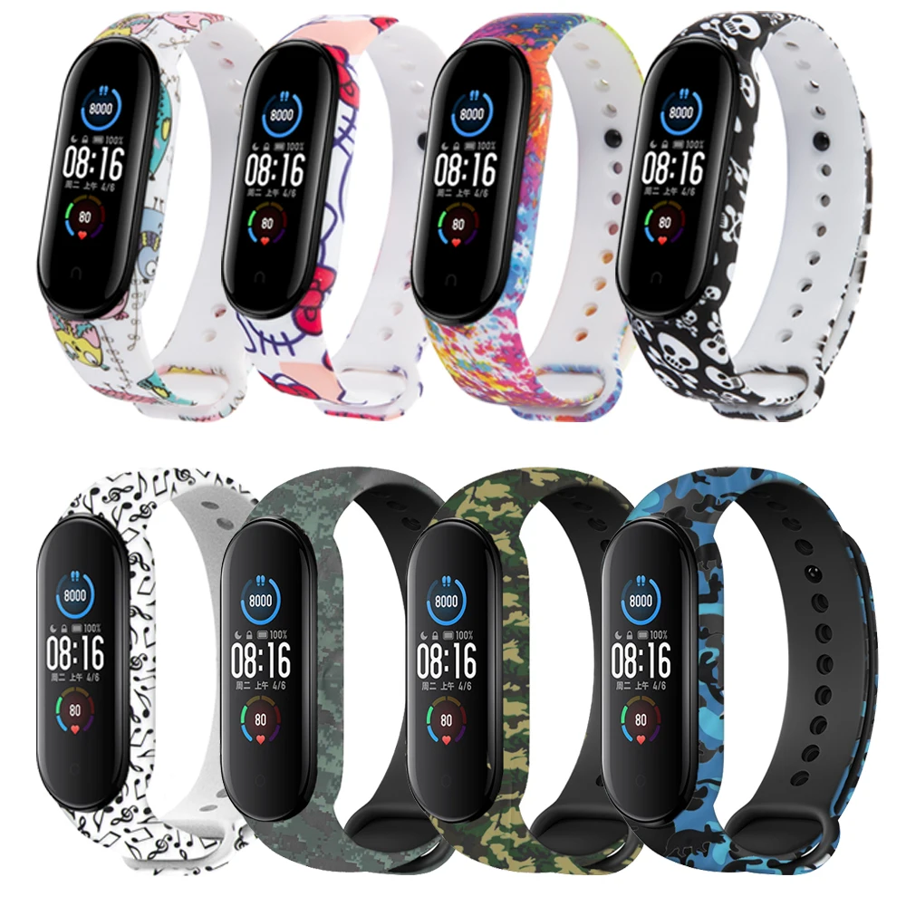 100 штук упак. Камуфляжный браслет для Xiaomi Mi Band 5 силиконовый спортивный смарт-браслет на запястье для Xiaomi Miband 5 ремень