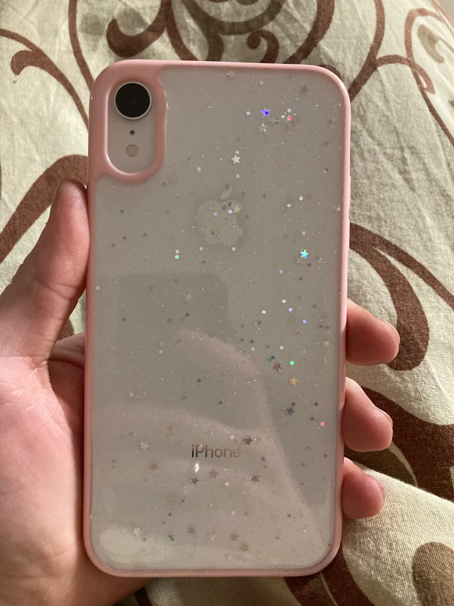 Чехол на XR. Доставка была довольно быстрой, около двух недель. Очень красиво блестит на телефоне при любом свете