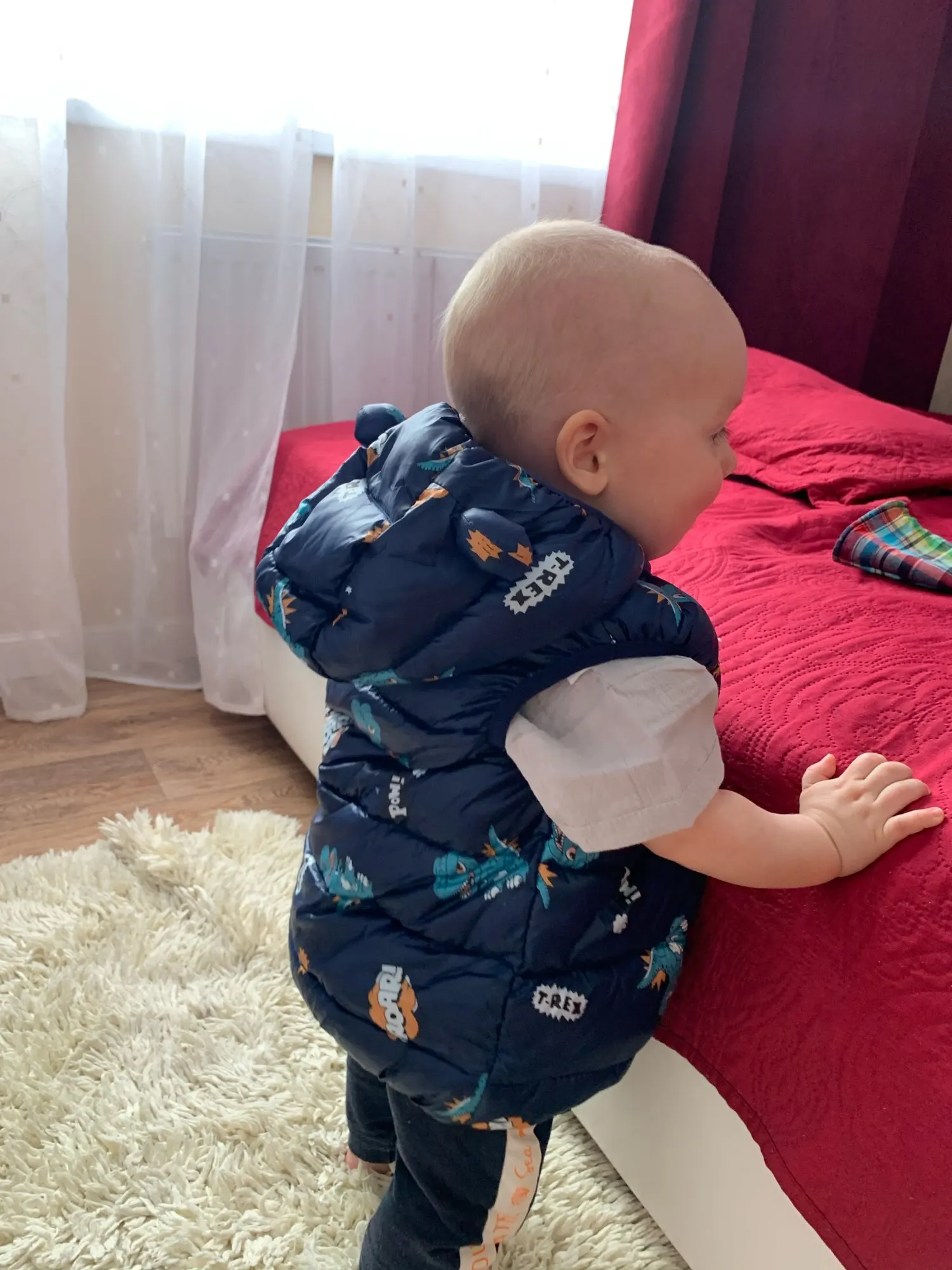 Хороший и тёплый жилетик.Размер 90 подойдёт с года до двух.