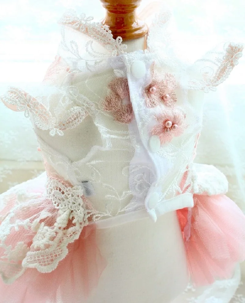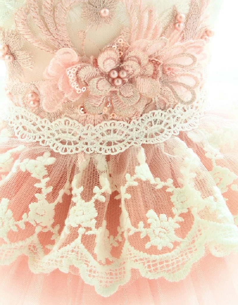 Милое Платье для собаки ручной работы Одежда для домашних животных пейсо бежевый воротник-стойка вырезанные кружева жемчужные цветы Чонсам Yorkie Пудель вечеринка праздник