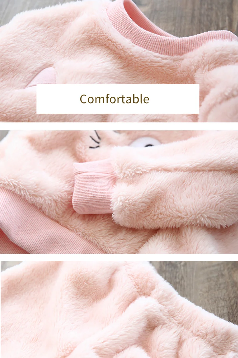 Фланелевый пижамный комплект для маленьких мальчиков и девочек, Флисовая теплая Пижама с изображением котенка и медведя, детский домашний костюм, зима, осень, весна, От 1 до 8 лет