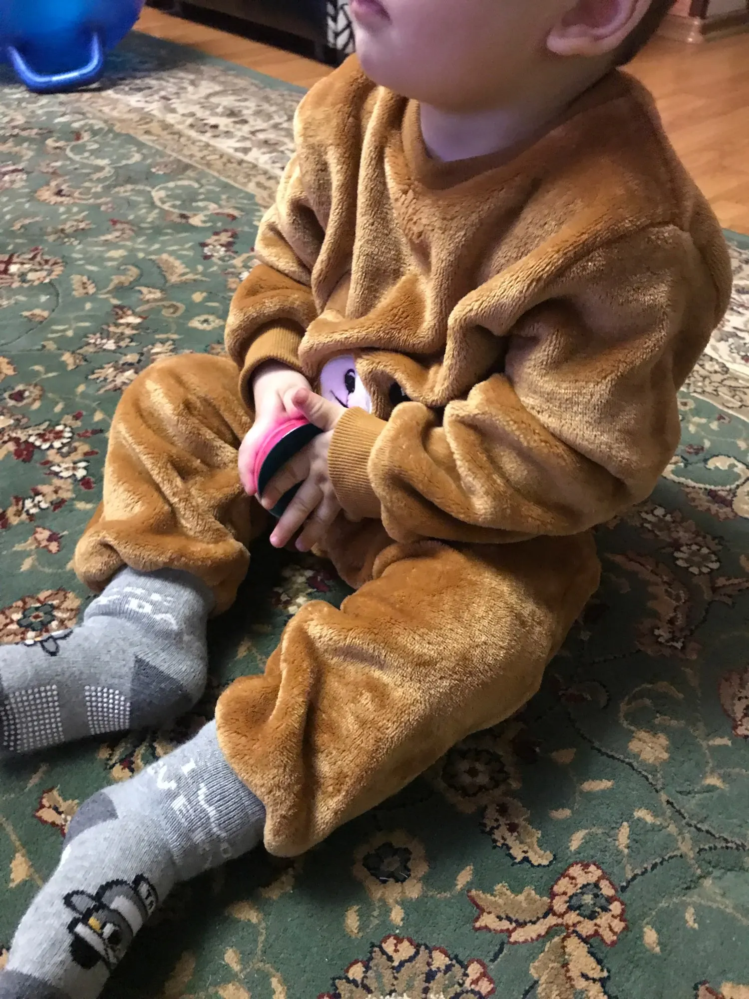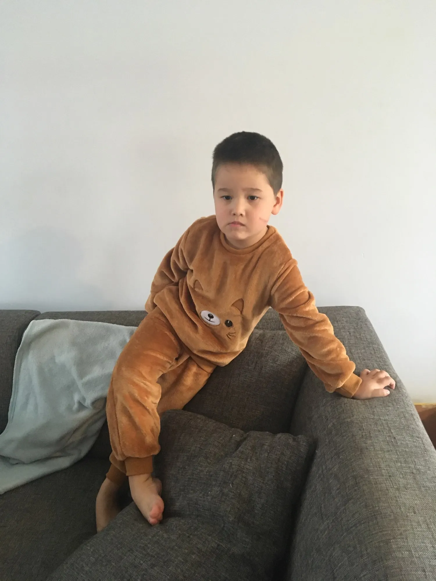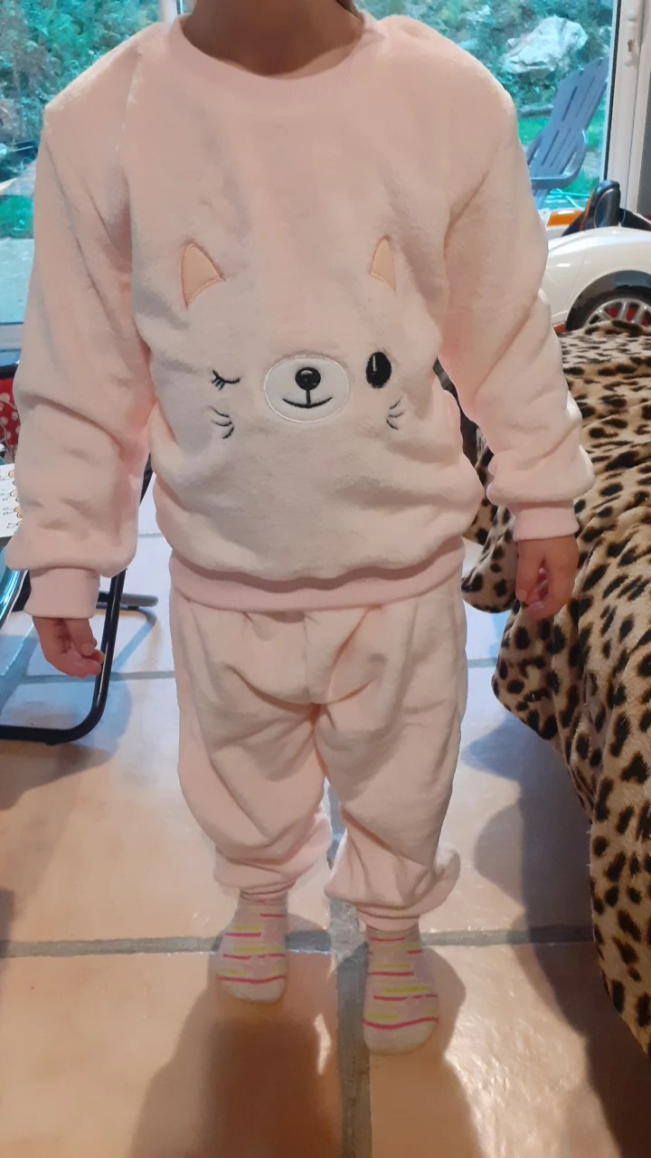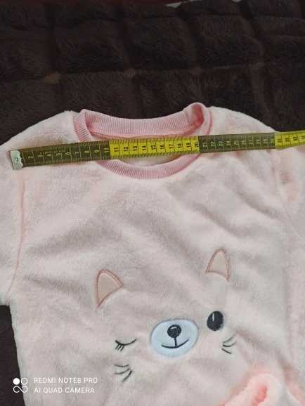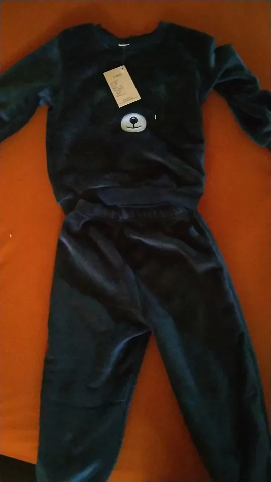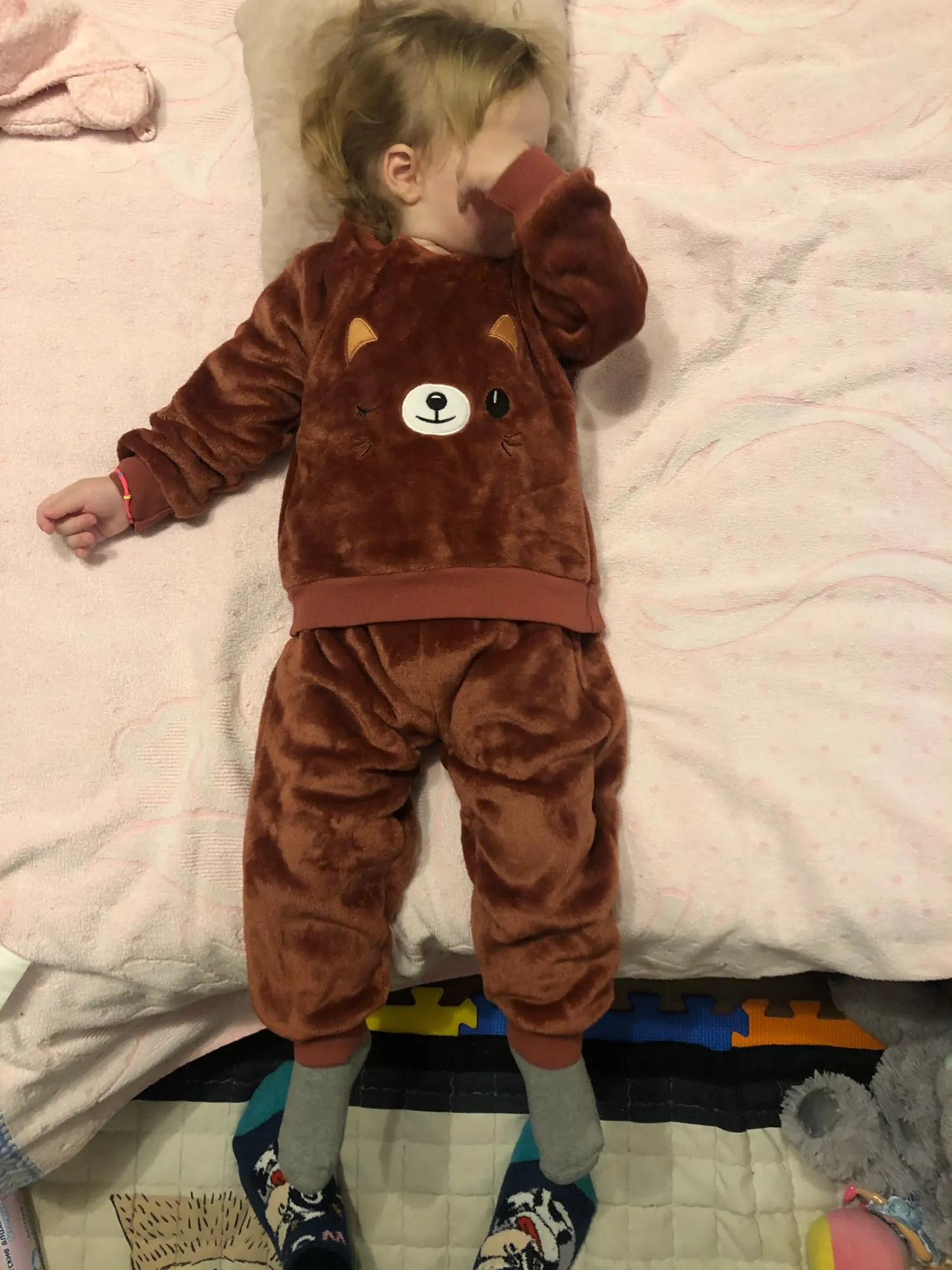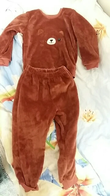 Пижамка класс!!! Шла до Питера 19 дней, размер 2Т на бирке написано 100, соответсвует ребенку 1.9 мес, 12 кг, 86 см рост. Хотя вещи беру уже 92 размера в магазинах, но по отзывам взяла на эту зиму спать, ну или дома ходить. Вообщем на 2 года размер 2Y без запаса на вырост, нам как раз в пору. Материал думала «травка» как называют, с высоким плюшем, а по факту она мягкий, скользкий плюш, ооочень приятная на ощупь, руку будто холодит. К телу очень мягкая, на счет сна не пробовала еще, все таки не хлопок, не знаю будет ли она греть или будет ли потеть в ней ребенок, отпишусь позже. Цвет кирпично-коричневый, выглядит не дешево, розовые уже приелись. Никаких ниток, кривых швов, все добротно сшито, швы ровные. Написано ручная стирка, но я постирала в машинке 30’ градусов, ничего не село, не полиняло, не деформировалось. Своих денег стоит, так как устала я в магазинах теплые пижамы искать, вечно то резинки тугие, то штаны во сне с памперса сползают, и ценник за 1000₽. Эту брала за 869₽