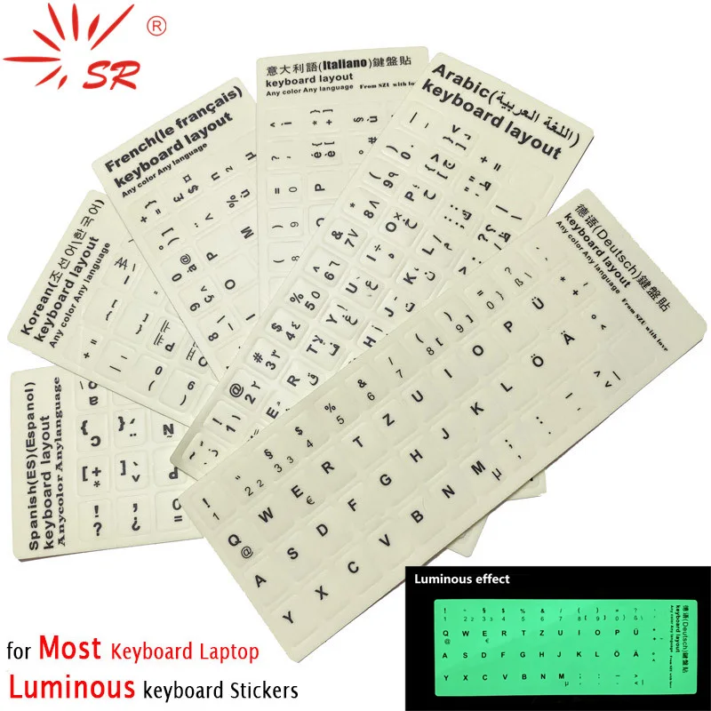 SR светящиеся итальянский, арабский, корейский Немецкий Испанский Французский японский английский Иврит Тайский язык, наклейки на клавиатуру