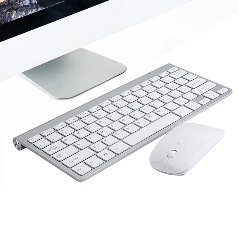 2,4 ГГц ультра-тонкий Беспроводной клавиатура и Мышь комбо с мышь с приемником USB клавиатура Набор для Apple Планшетные ПК (серебро)