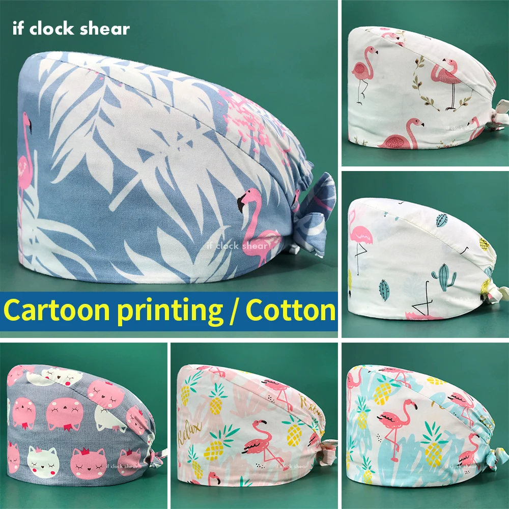 Впитывающая пот Модная хлопковая шапка с принтом для медсестер шапк...