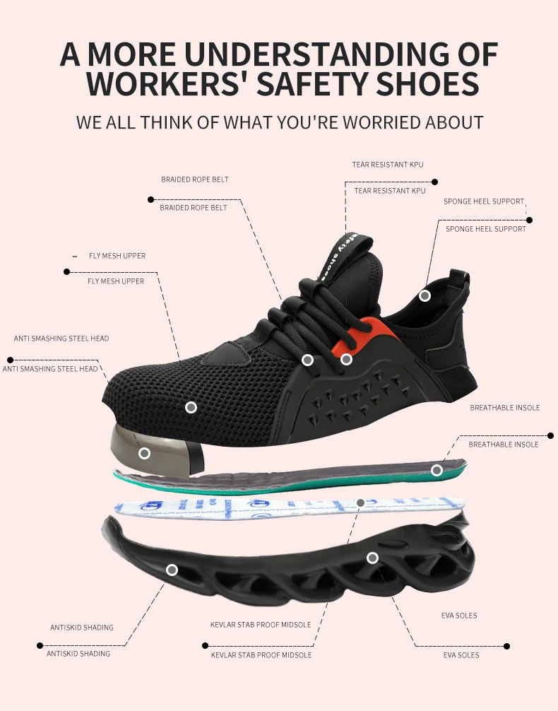 Защитные для кроссовок, мужские, модные, легкие, дышащие, уличные, со стальным носком, с защитой от разбивания, рабочие ботинки, Zapatos Hombre