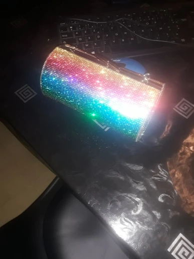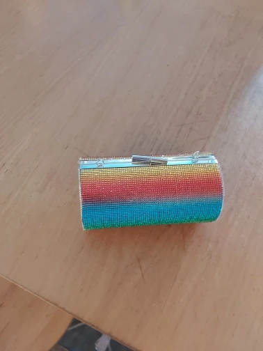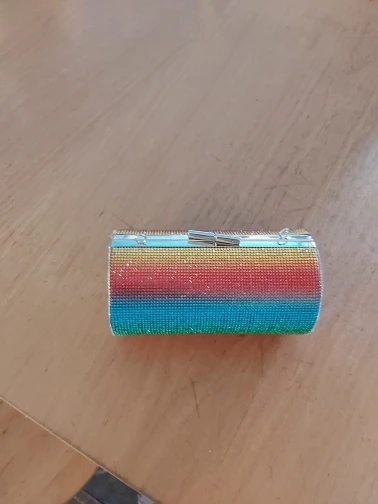 Воняет клеем. Липкая местами, но безумно яркая и красивая. Материал- обычная плотная бумага с камнями. То есть сумка не обклеена камушками по отдельности.