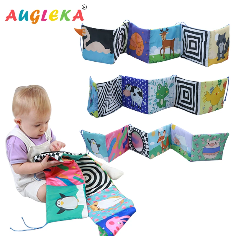 Детские игрушки, тканевые книги, наклейки для кровати, бампер, черный и белый цвет, животные, история, тканевые книги, Монтессори, детские погремушки, игрушки