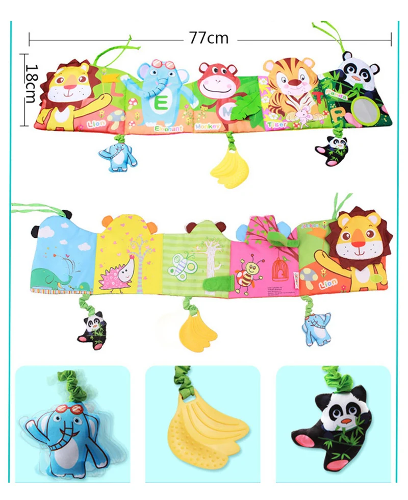 Детская разноцветная тканевая книга-погремушка для младенцев 0-12 месяцев