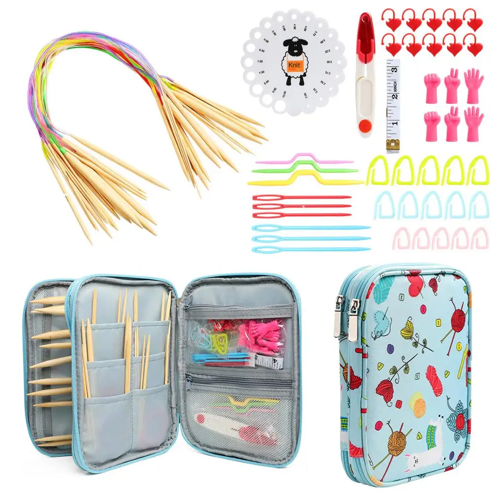 Набор спиц для вязания, круговые маркеры из бамбука, 60 см, с сумкой