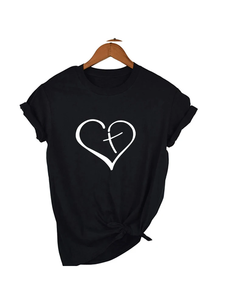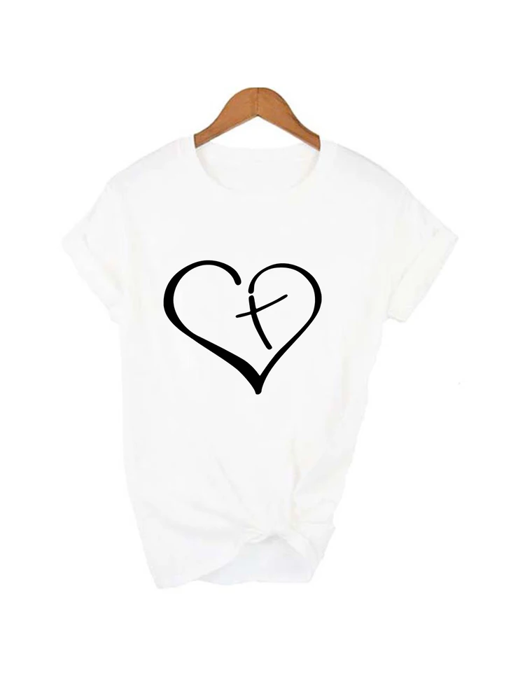 Женская футболка с коротким рукавом и принтом в виде сердца и Иисуса